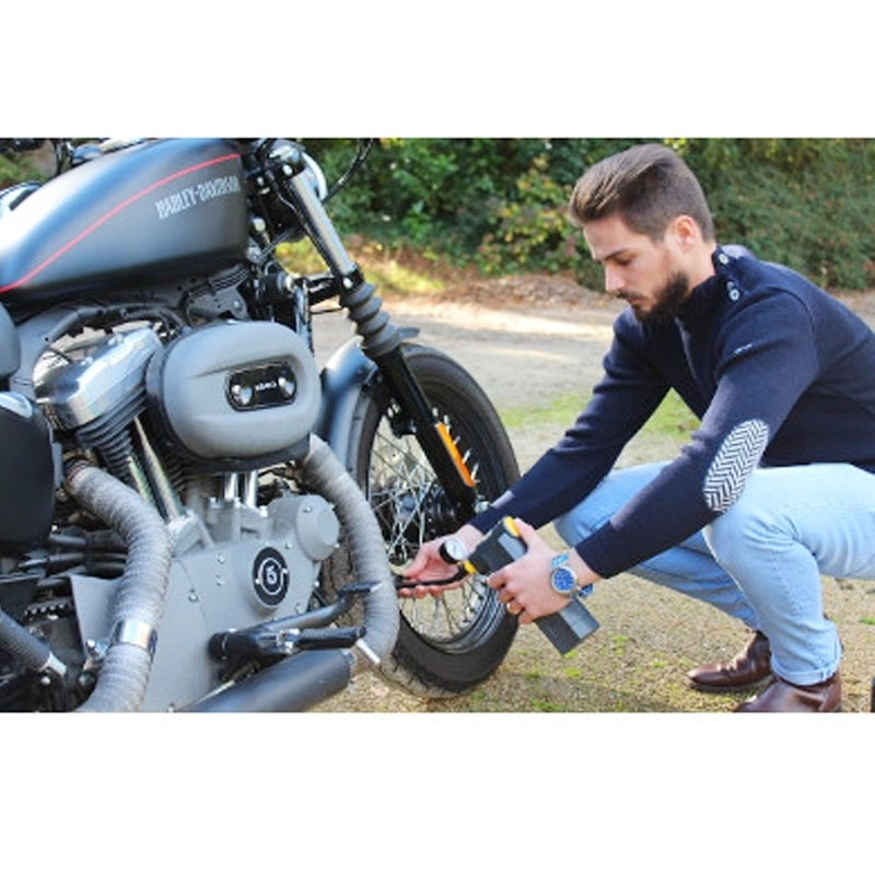 Un écran intégré au gonfleur sert de manomètre et s’arrête automatiquement dès que la pression programmée est atteinte. De plus une lampe LED se déclenche automatiquement pour le gonflage de nuit.