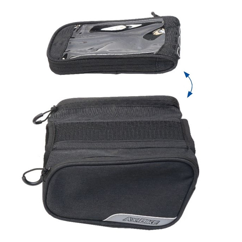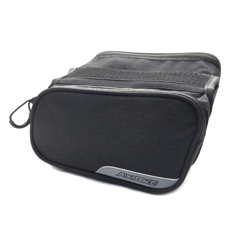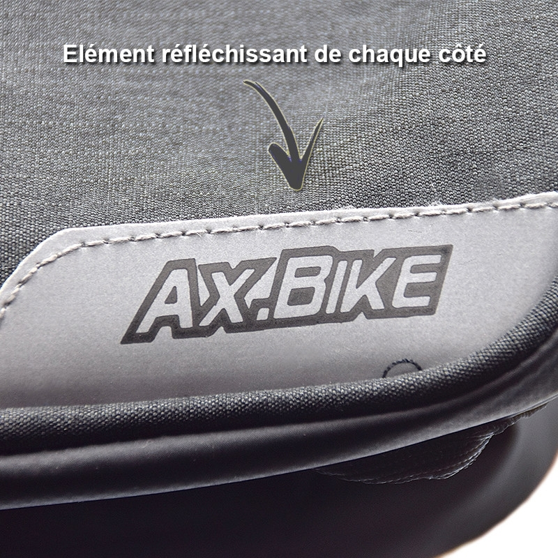La sacoche étanche de la marque AX Bike se fixe facielement sur les cadres de VTT, VTC et vélo de route au moyen de 3 bandes velcro.