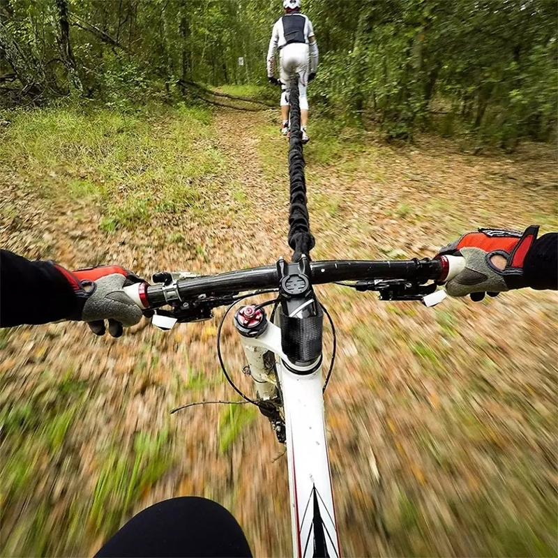 Le système de traction vélo Shotgun Tow Rope vous permet d’éviter les problèmes de dénivelé puisque cette corde robuste est une solution idéale de remorquage pour aider un vélo enfant à passer les montées.
