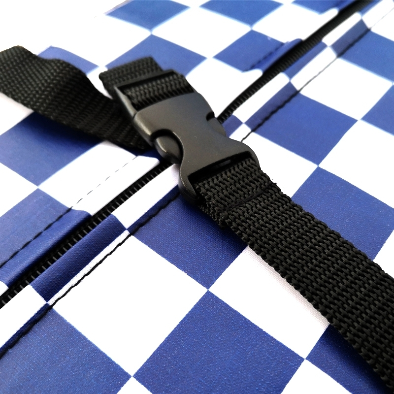 Le coussin Hooodie à carreaux de couleur bleu et blanc est parfait pour transporter un enfant ou un passager sur le porte bagage arrière sans avoir recours à un siège enfant. Son assise de 7 cm apporte un position confortable pour les fessiers de la personne transporter. Il se fixe facilement sur le porte-bagage de vélo à l’aide de ses attaches Velcro.