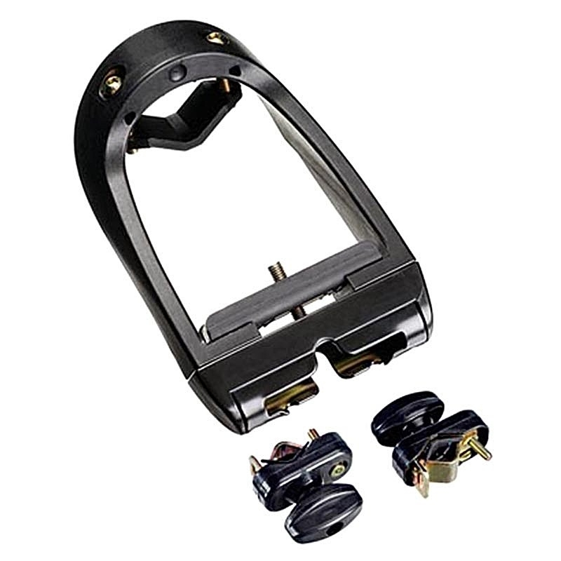 La fixation est fournie avec attache sur tube de selle compatible avec un diamètre de tube de 28 à 50 mm ainsi que deux vis avec étrier de blocage spécialement conçu pour les tubes de 10 à 25 mm de diamètre.
