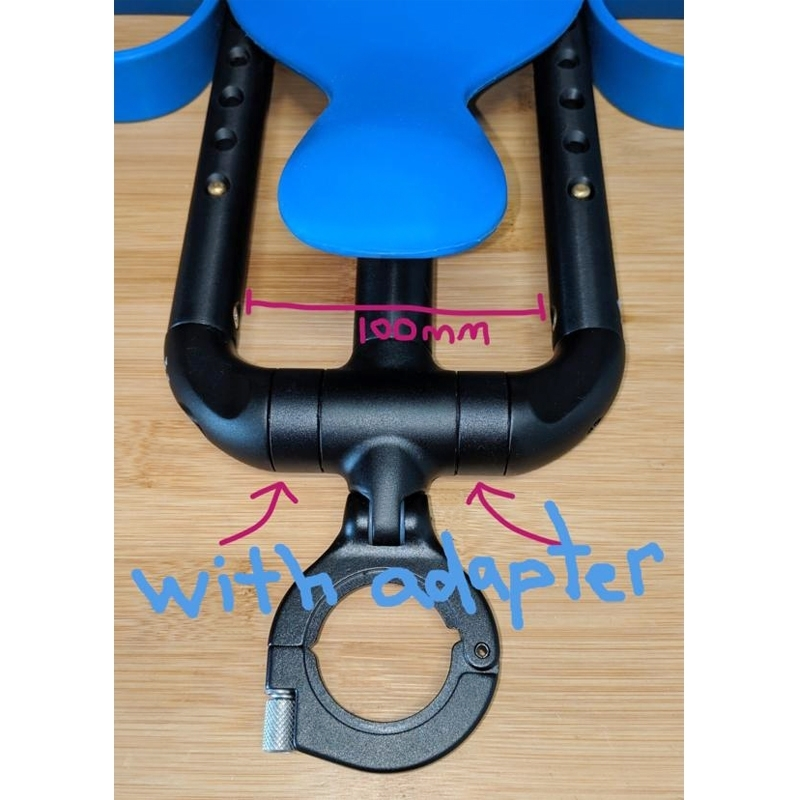 Adaptateurs permettant le montage de la barre transversale pour enfant MAC-RIDE sur un cadre composer de tube large sur vélo à assistance électrique.