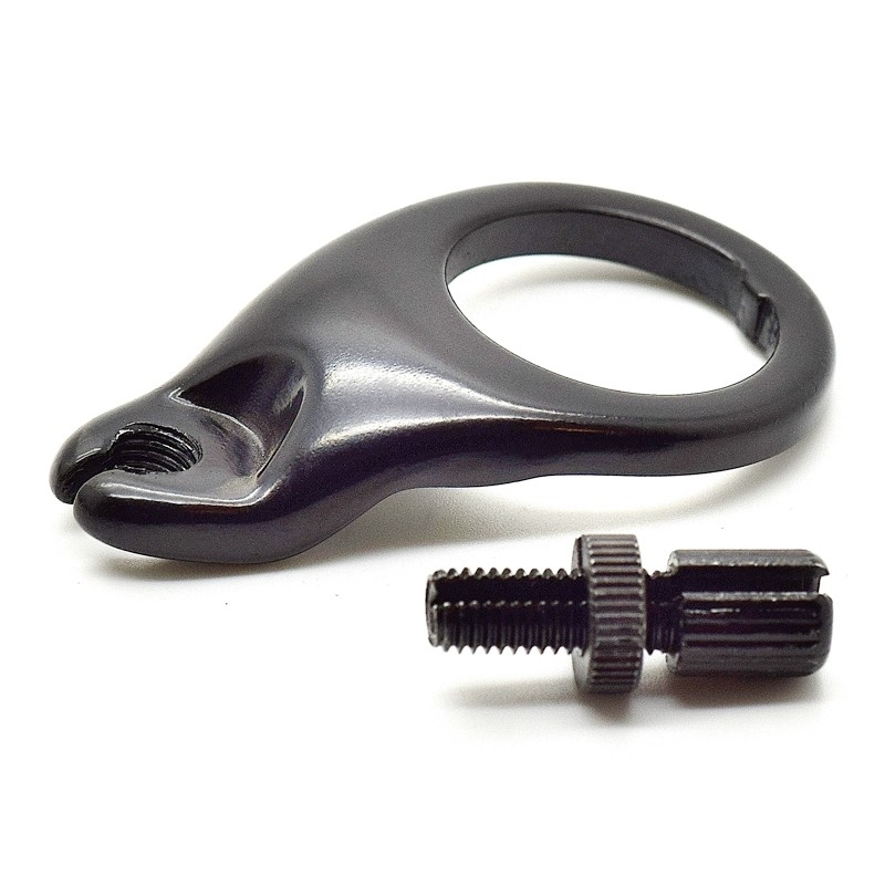 Cette butée de gaine de frein avant permet de faire fonctionner le frein en maintenant la gaine du câble du frein sans avoir de retenu ou de frottement sur le cadre. Cette bague en aluminium noir de 25.6 mm de diamètre est livrée avec une vis de réglage vous permettant d’ajuster la tension de votre câble de frein.