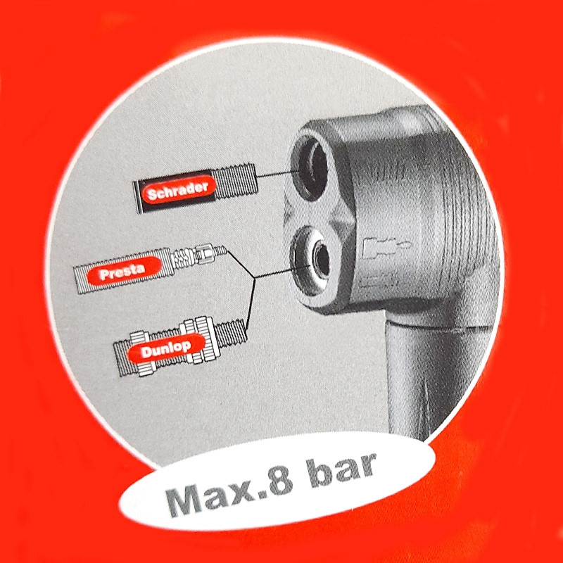 Son corps extensible et sa poignée en T vous assure une meilleur prise en main. De plus cette pompe est à double-action ce qui vous permet d’obtenir avec un coup de pompe l’équivalent de deux coups de pression jusqu’à 8 Bar maxi.