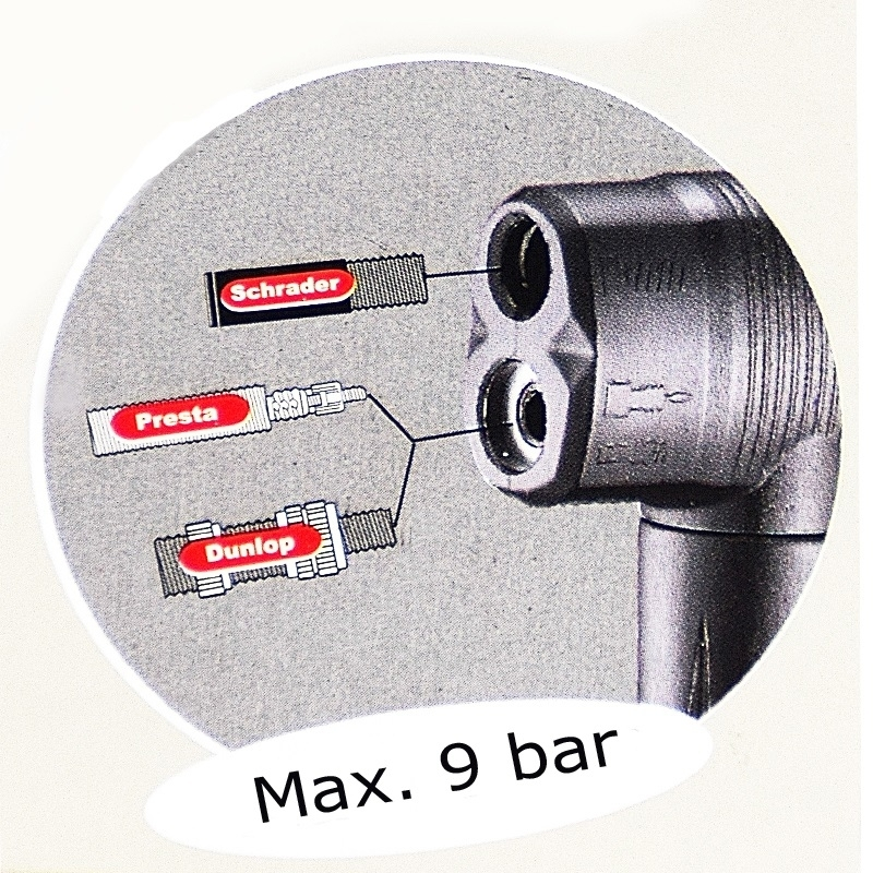 La tête de la pompe convient pour les valves Presta, Schrader et Dunlop.