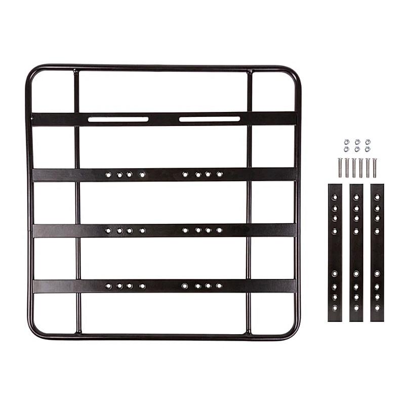La plaque de support M-Wave Racky en aluminium robuste de couleur noire se fixe sur le porte-bagage arrière vélo afin de permettre de transporter des objets volumineux ou en utilisant une caisse de transport.