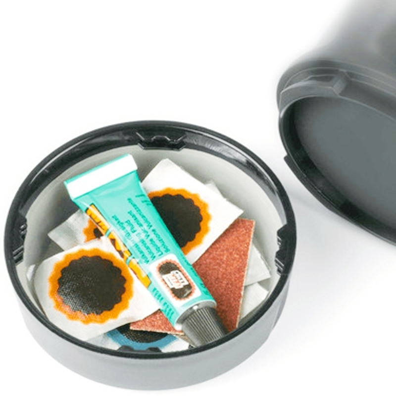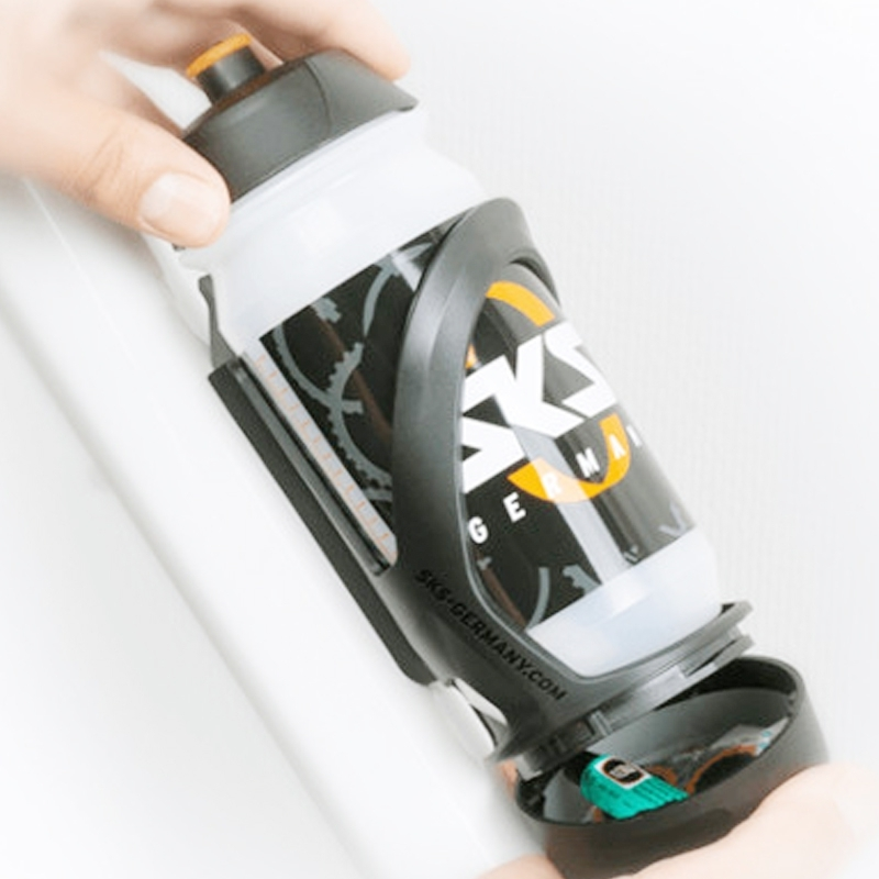 Cet accessoire permet également le rangement dans la partie basse du porte bidon, de ranger de la monnaie, une clé, ou tout simplement des accessoires indispensable comme des outils de réparation crevaison, des rustines, de la colle à rustine, un set de réparation pneu ou un multi-outils vélo.