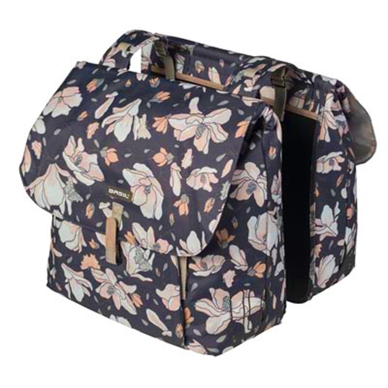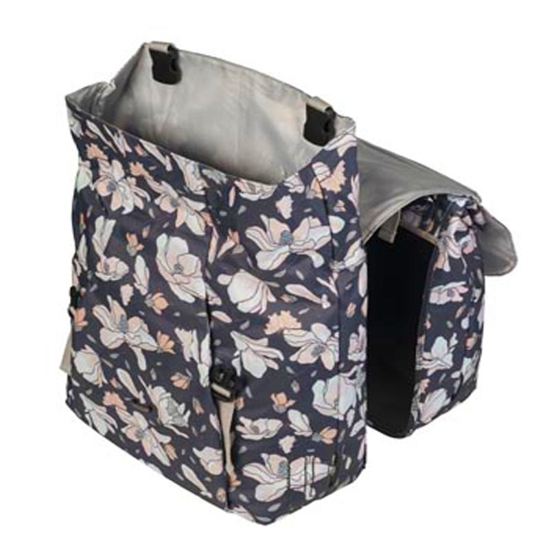 Les sacoches double Magnolia de la marque Basil apporte une note d’élégance à votre 2 roues et permettent de transporter avec aisance vos affaires sur le porte-bagages arrière des vélos urbains, vélo trekkings et VAE.