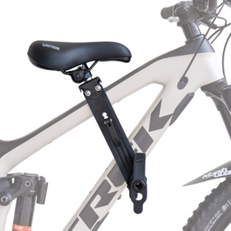La selle Shotgun offre une solution simple et sécurisée pour permettre de transporter à l’avant d’un vélo tout terrain de 26 à 29 pouces. Facile à mettre en place avec un ajustement précis au moyen des outils fournis, la fixation se fait sur tube supérieur incliné, raide ou conique de 30 à 68 mm de large et sur des tubes inférieurs avec une largeur de 30 à 100 mm et pour tige intérieur de 210 mm et pour une côte extérieur de 258 mm.