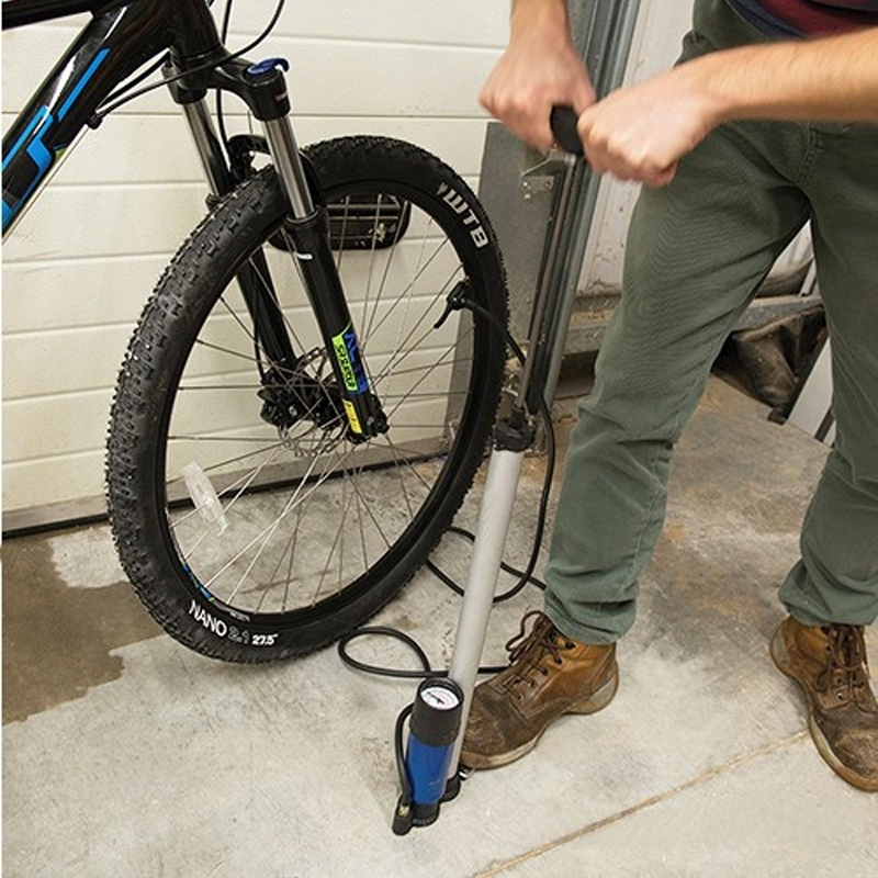 Fabriqué en aluminium avec manomètre intégré, cette pompe compacte et légère permet de gonfler avec facilité les pneus de vélo équipés de valves presta, schrader et Dunlop pour une pression jusqu’à 7 Bar.