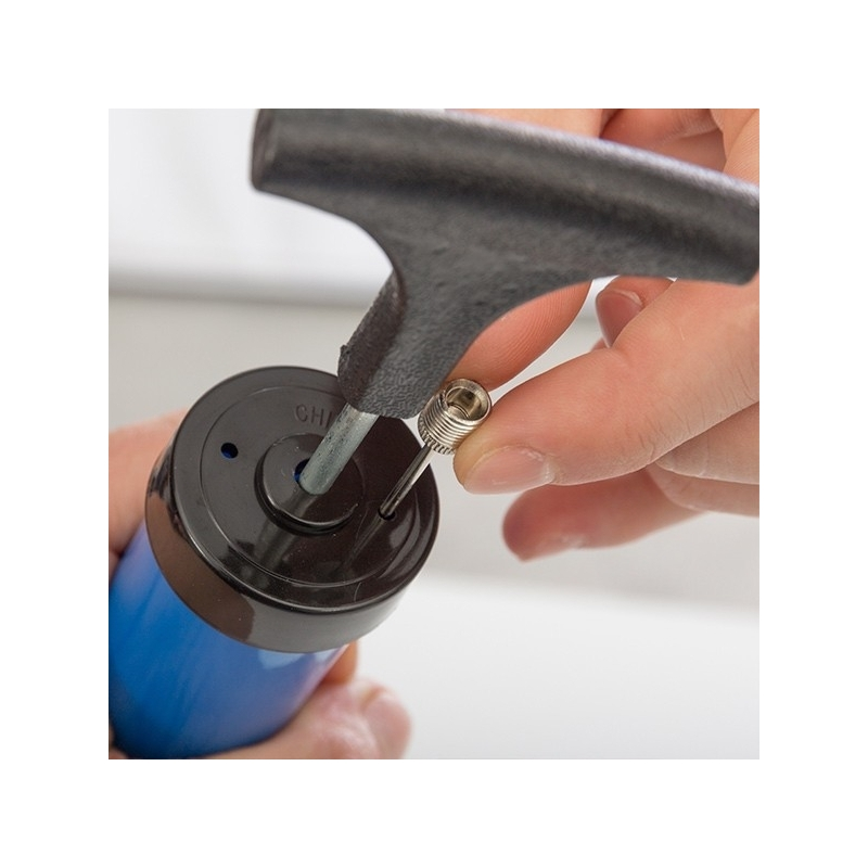 Corps en plastique pour gonfler ballons et autres petits pneumatiques. Fourni avec un adaptateur aiguille.