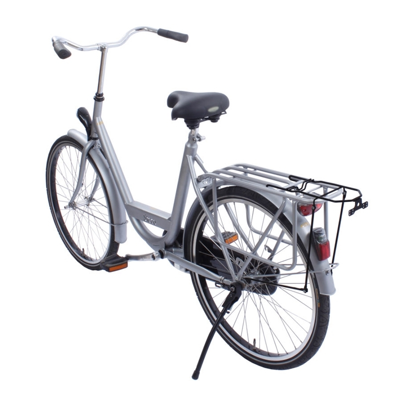 Ce prolongateur de porte-bagages arrière permet de transporter deux sacoches à l’arrière du vélo en combinaison avec un siège enfant. Ce prolongateur en acier noir robuste rallonge de 25 cm le porte-bagages d’origine.