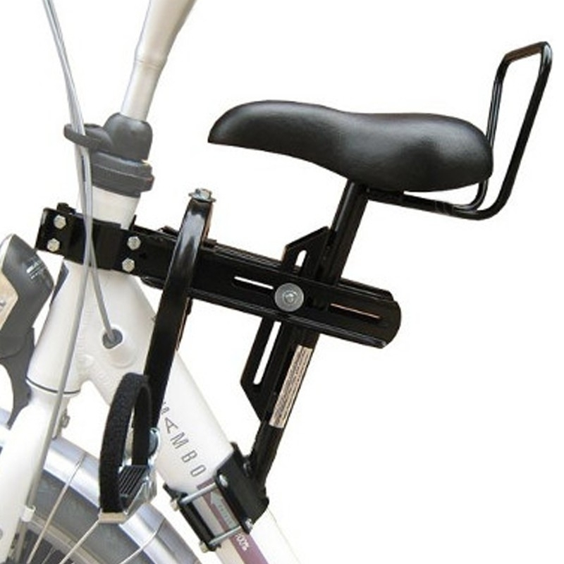 La selle enfant sur cadre de vélo dispose d’un dossier pour plus de confort et de 2 repose-pieds, elle s’installe facilement devant soi sur un vélo de ville avec un tube de cadre large et bas avec diamètre de 34 à 65 mm et sur le tube de direction.
