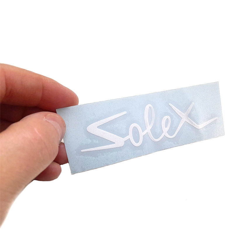 Autocollant marque SOLEX Blanc pour transfert sur poutre vélo.