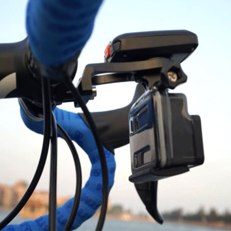 Ce support de téléphone et caméra compatible Igpsport, Garmin, Bryton, GoPro est un accessoire vélo à fixer à l’avant du vélo sur le cintre.