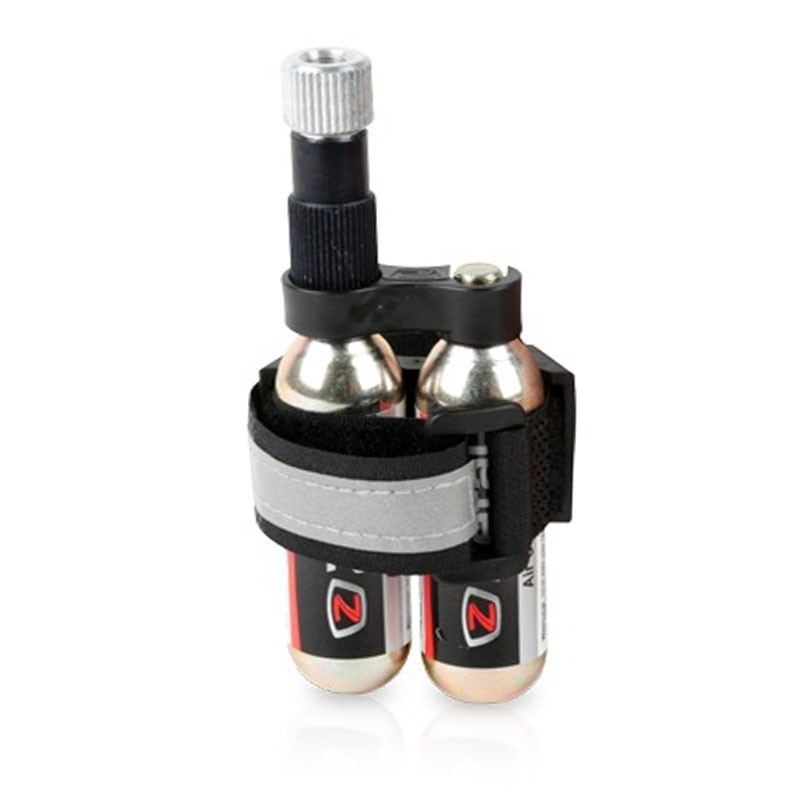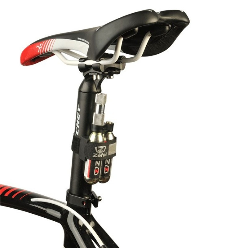 - Fixation universelle sur tige de selle ou cadre pour 2 cartouches 16 g filetées ou 1 gonfleur CO2 du type EZ CONTROL
