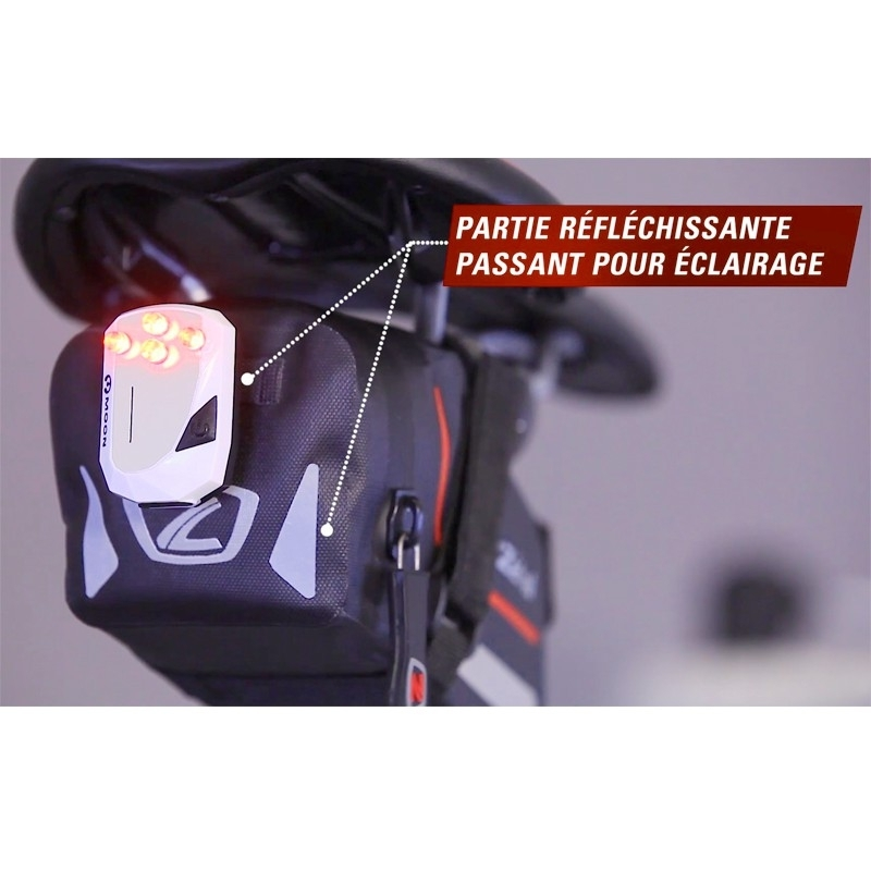 - Fixation par 2 bandes velcros sur tige et rails de selle